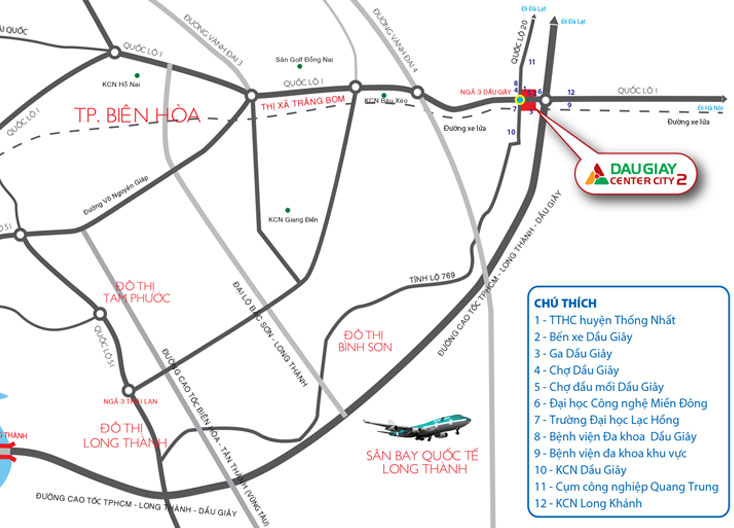 Vị trí: Tọa lạc ở mặt tiền giữa quốc lộ 1, ngay nút giao với quốc lộ 20 và đường cao tốc TPHCM – Long Thành – Dầu Giây