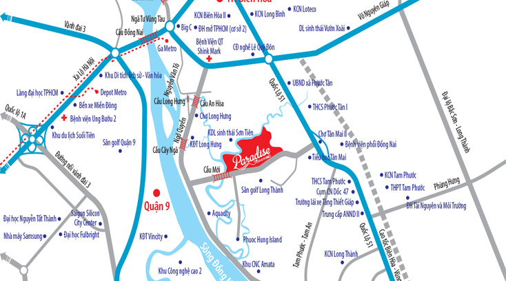 Theo quy hoạch tổng thể phát triển kinh tế – xã hội của tỉnh Đồng Nai đến năm 2020, Paradise Riverside nằm trên trục hành lang phát triển kinh tế Biên Hòa – sân bay quốc tế Long Thành, và nằm trong khu vực tập trung phát triển các khu đô thị quy mô lớn, có nhiều tiện ích nhằm phục vụ cho chiến lược giãn dân của TPHCM. Nhiều dự án quy mô lên đến hàng trăm héc ta như AquaCity (308ha), khu đô thị Long Hưng (227ha), Đồng Nai WaterPoint (366ha), khu du lịch Sơn Tiên (374ha)… Và sự xuất hiện của Paradise Riverside với nhiều ưu điểm nổi bật sẽ góp phần biến nơi đây sớm trở thành một khu đô thị lớn phát triển cực kỳ sôi động bên cạnh quận 9 (TPHCM), đồng thời cung cấp một không gian sống đẳng cấp và đáp ứng mọi nhu cầu kết nối giao thương cho người dân địa phương cũng như các chuyên gia, doanh nhân, lực lượng lao động trình độ cao làm việc trong các khu công nghiệp, khu công nghệ cao tại TPHCM, Biên Hòa, Long Thành, Nhơn Trạch, sân bay quốc tế Long Thành.