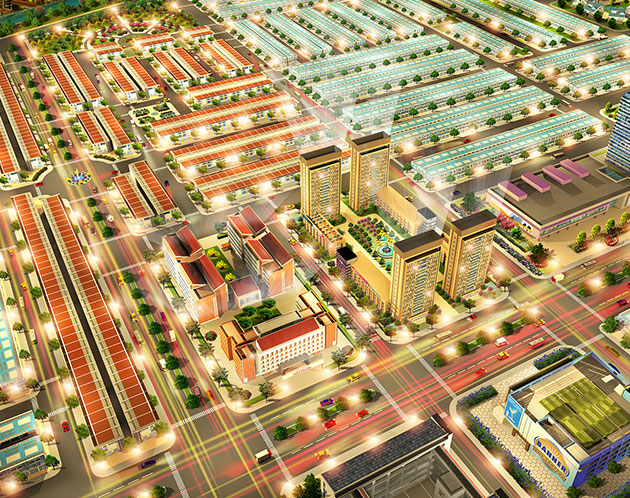 Hạ tầng nội khu: Đường nội bộ 14 – 36m, hệ thống điện – nước âm, vỉa hè rộng, công viên, trường học…